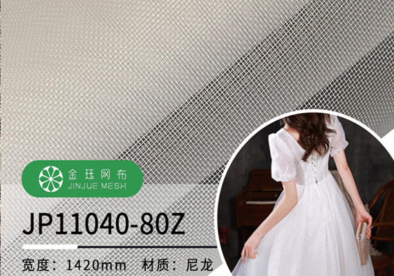 JP11001白色尼龍婚紗禮服類絲網(wǎng)布是我們的基本款,也是熱銷及應用廣泛的一種尼龍網(wǎng)眼布, 該商品目數(shù)為10絲80目,顏色主要有本白色、膚色、金色、銀色等,顏色、目數(shù)、克重門幅都可以來圖來樣定制。主要用于制作婚紗禮服、西服等里襯高級面料,繡花高級底料。