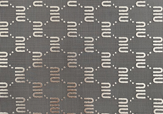 此款網眼布是燙金工藝,燙金網布是以滌綸、錦綸等化學纖維為原材料再經過燙金工藝(將布料放在燙金機上進行高溫等方式處理)處理后制成,一般布面上會帶有花紋和圖案的這類網眼布統稱為燙金網眼布。